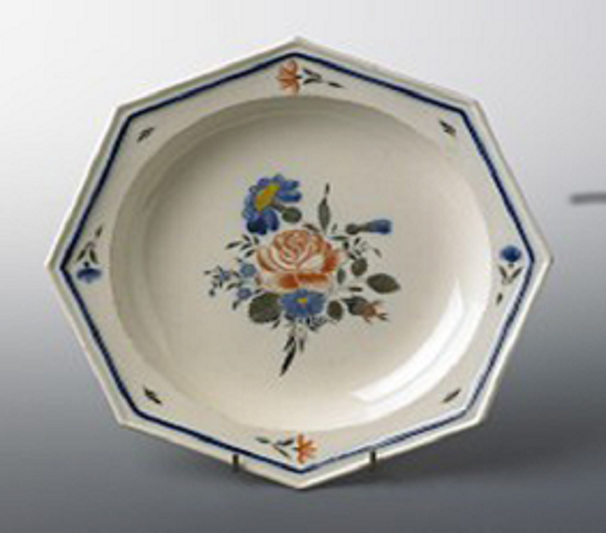 Informations sur l'oeuvre : Assiette octogonale - Boch, Luxembourg - N° d’inventaire: 2008.7.101 / Dimensions: 33 x 235 mm/ Matière: terre de pipe glaçurée /1813 – 1825