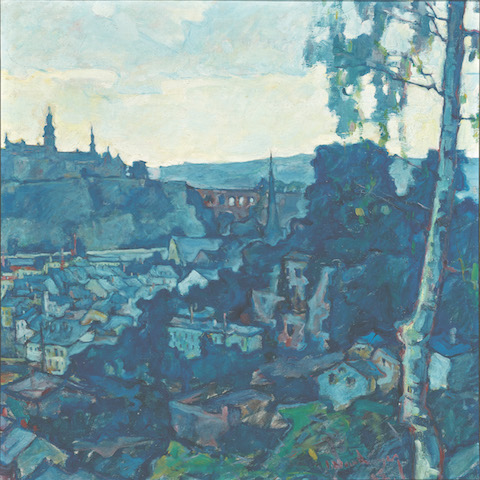 Photo : Jean Noerdinger : Vue de la vieille ville de Luxemborg avec Schlassbreck - 1922 - huile sur toile 64 x 54 cm