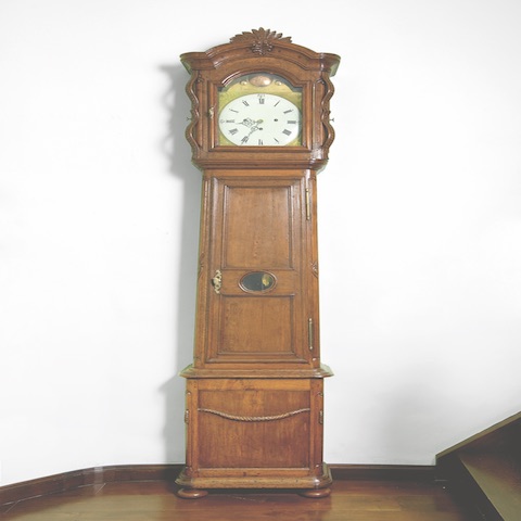 L'horloge à gaine signée Jean Flamand proviendrait de Wiltz et fut longtemps en possession d'une famille de Larochette.