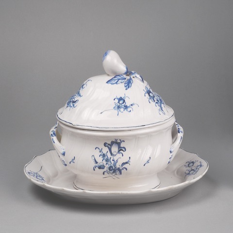 - Soupière à "l'hibiscus" : Décor à l'hibiscus en camaïeu bleu - Avant 1787 - Terre de pipe de Septfontaines (Boch Luxembourg)